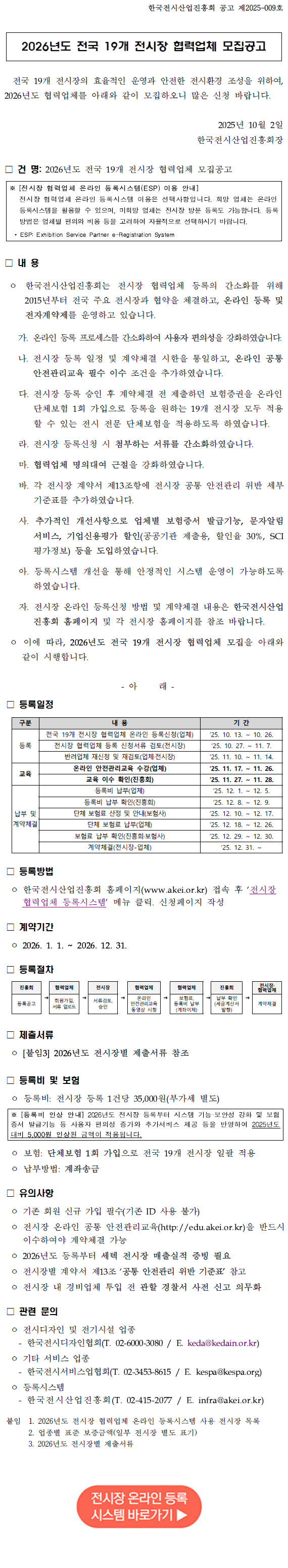 - 251002 2026년도 전국 19개 전시장 지정등록업체 모집공고.pdf (622.4K) 8회 다운로드 | DATE : 2025-10-02 16:16:55